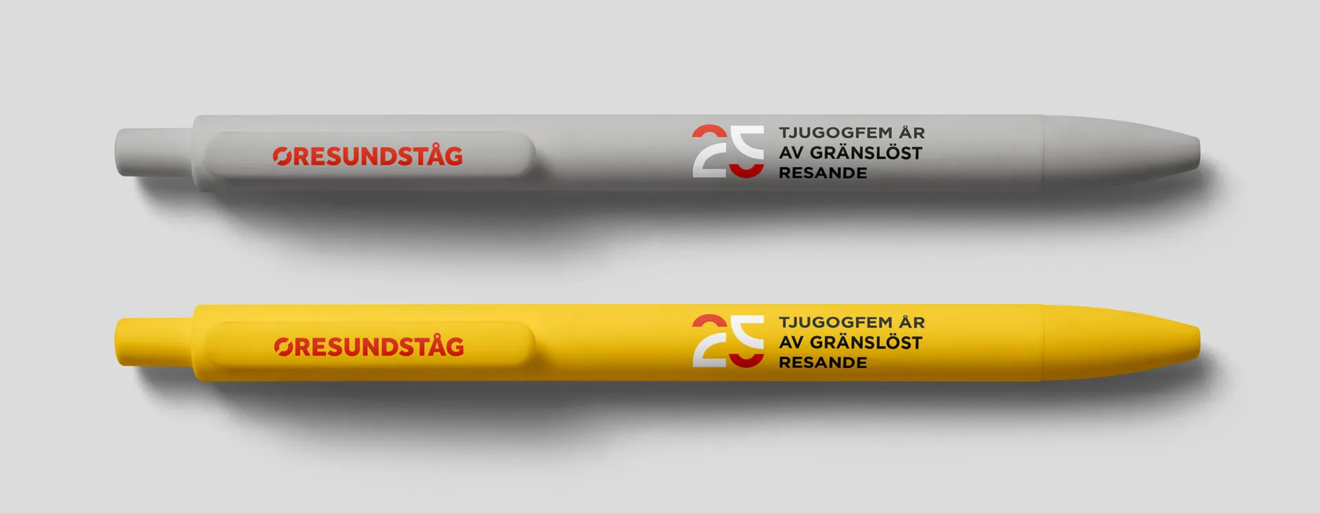 Tjugofem år har bokstavligen gått som tåget. När Öresundståg den 1 juli 2025 firade ett kvarts sekel av gränslösa resor över bron och mellan regioner, fick vi uppdraget att formge jubiléet. Ett riktigt hedersuppdrag. Med utgångspunkt i Öresundstågs logotyp hittade vi den självklara formen. En tvåa och en femma som på en och samma gång bildar en enhet och visualiserar resan åt två håll.